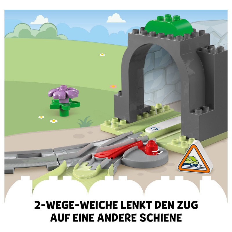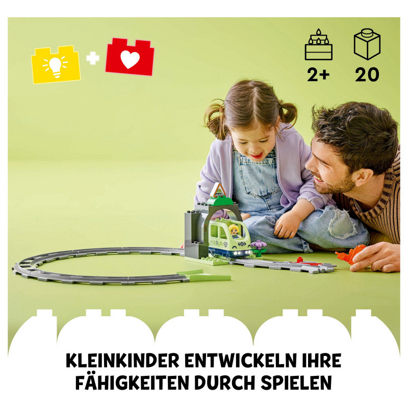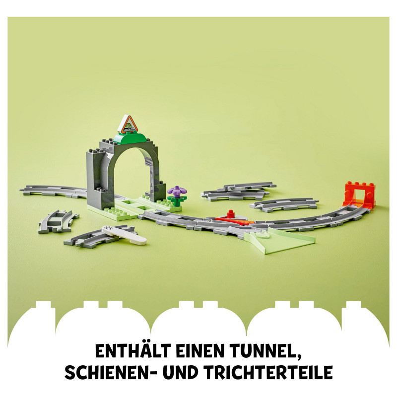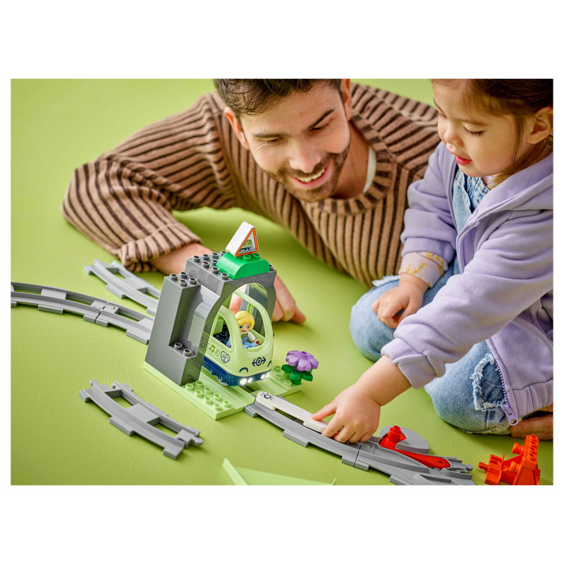 Train track toy set – Toddlers aged 2+ extend their LEGO® DUPLO® railway adventures and learn developmental skills with the Train Tunnel and Tracks Expansion Set