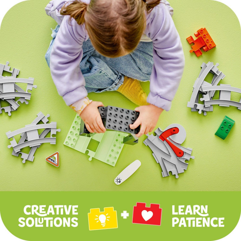 Track building that connects to toy train sets – Add this set to LEGO® DUPLO® Town interactive train sets (10427 and 10428) to create an even bigger learning journey for preschool-aged kids