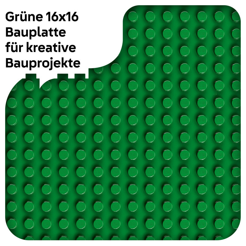 Green LEGO® DUPLO® baseplate – This 16x16-stud square grid comes in classic green and has hundreds of perfectly aligned studs to give little builders the right grip for all their creative building