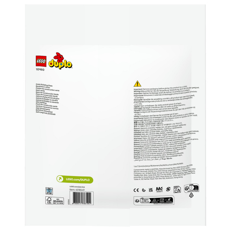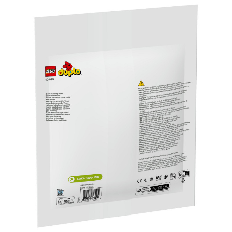 "LEGO DUPLO Green Building Plate. Product type: Building set, Recommended age (min): 1.5 yr(s), Material: Plastic, Number of pieces: 1 pc(s). Package weight: 129 g"\n"The LEGO® DUPLO® Green Building Plate (10460) construction toy provides the ideal landscape for preschoolers aged 18 months and over to build on, play with and display their imaginative creations.