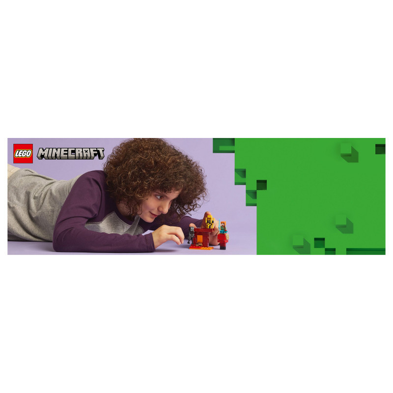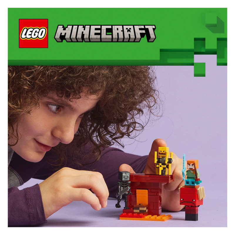 "LEGO Minecraft The Nether Lava Battle. Product type: Building set, Recommended age (min): 6 yr(s), Material: Plastic, Number of pieces: 99 pc(s). Package weight: 123 g"\n"The Nether Lava Battle (21266) is a small LEGO® Minecraft® set that provides a build-and-play version of the popular video game. This versatile Minecraft activity set features popular gaming figures, fun features and endless action, making it the perfect treat for kids aged 6 and over.