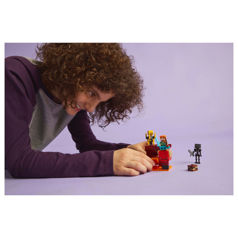 Minecraft® activity set – Includes a buildable section of the Nether fortress bridge, plus Alex, wither skeleton, blaze and strider LEGO® Minecraft figures with weapons and accessories