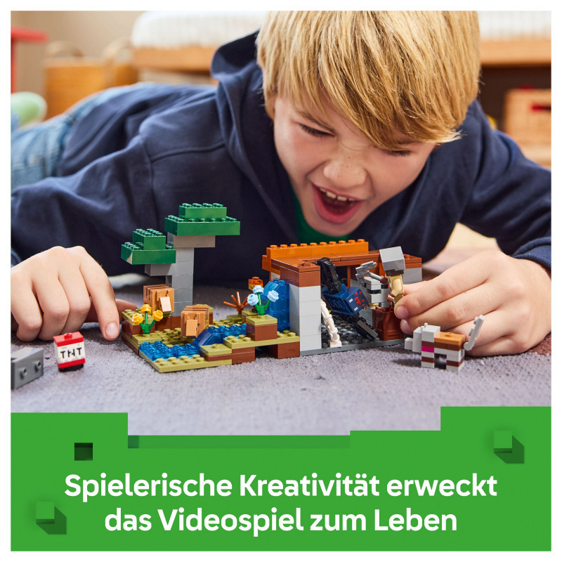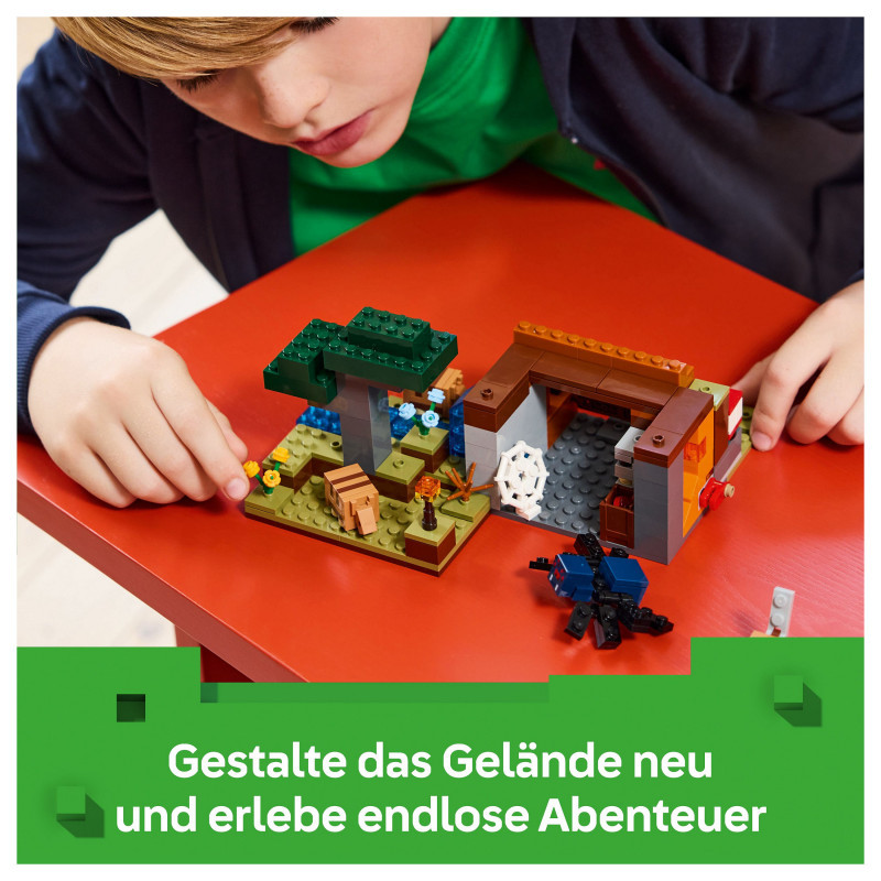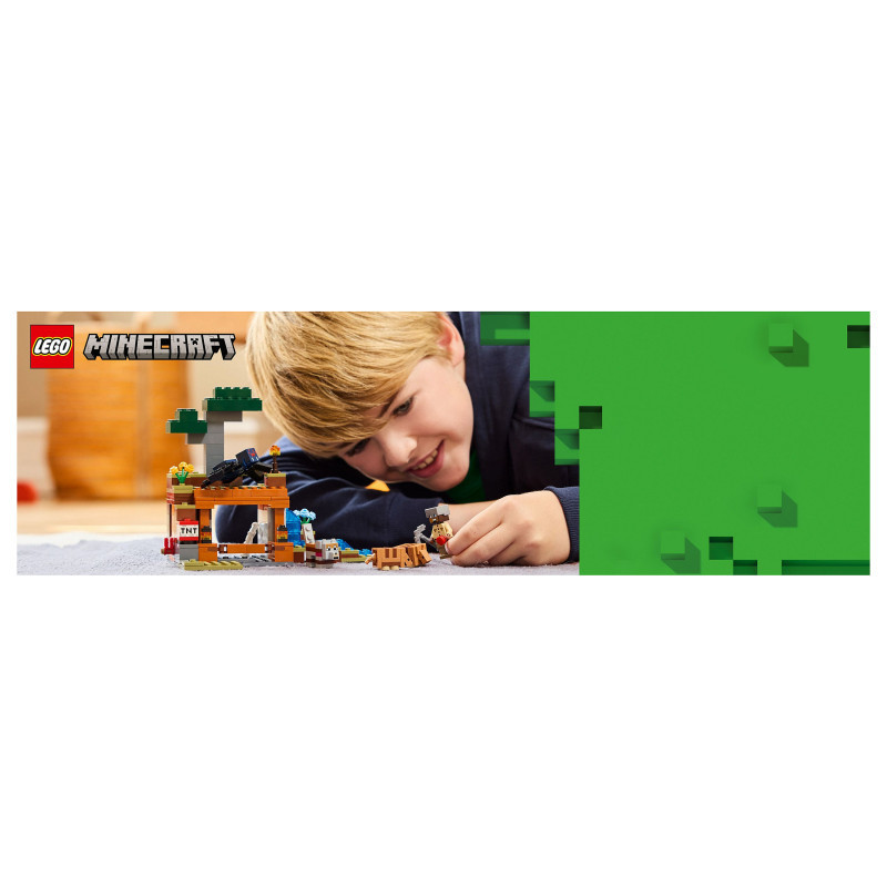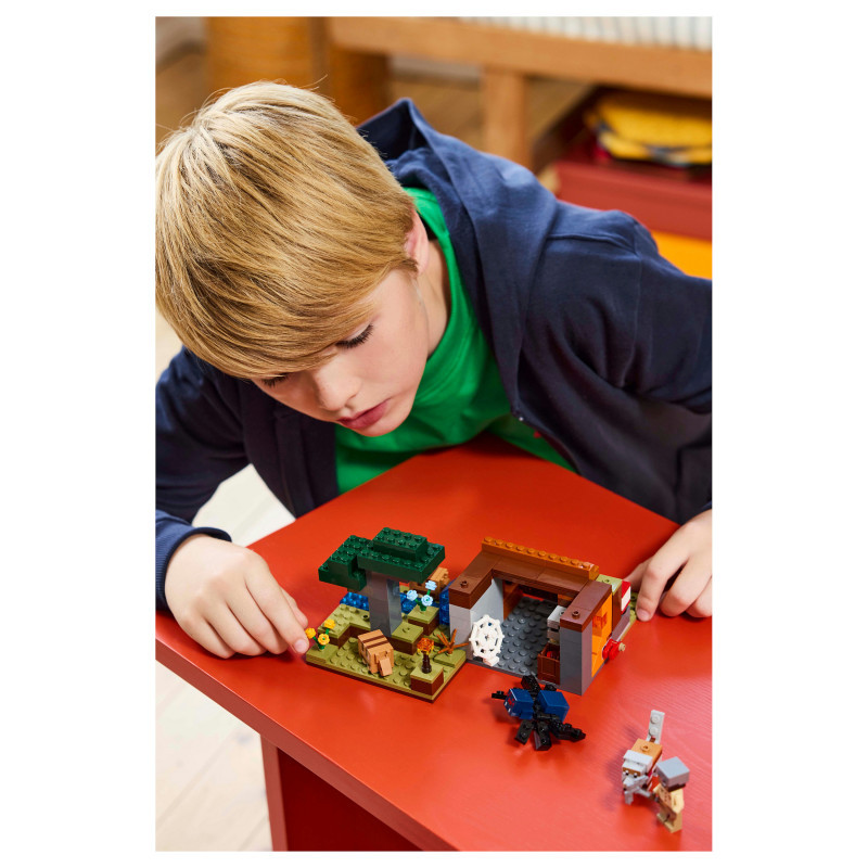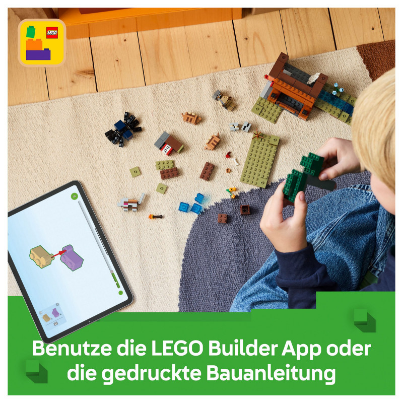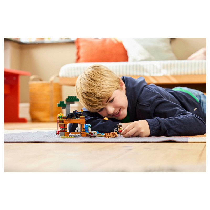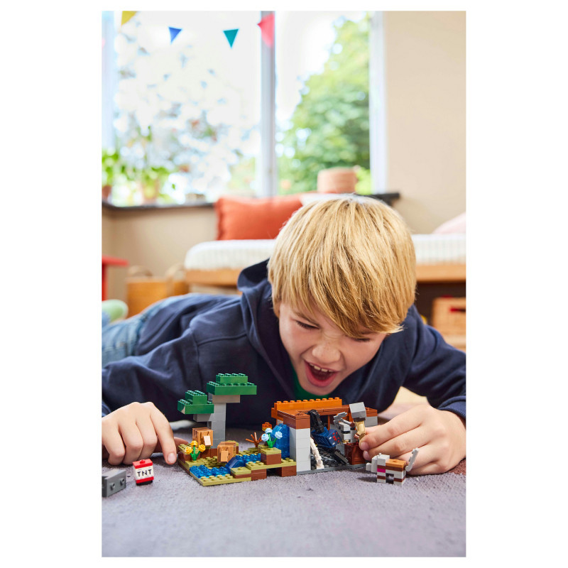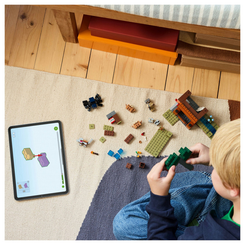 Set in the game’s savanna biome, the model features a mine with a lever-controlled TNT function that blasts away a piece of the terrain to reveal precious ore. There is a cave spider toy and a wolf, plus 2 armadillos, which provide the scutes used to craft wolf armour. At the side of the mine there is a small river and a lava fall. The set easily rearranges to inspire new adventures. For extra digital fun, the LEGO Builder app lets kids zoom in and rotate models in 3D using their device.