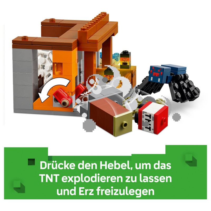 Video game playset – The action takes place in the game’s savanna biome, and the set features a mine with a lever-controlled TNT function that blasts away a piece of the terrain to reveal precious ore
