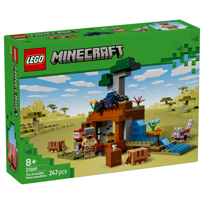 "LEGO Minecraft The Armadillo Mine Expedition. Product type: Building set, Recommended age (min): 8 yr(s), Material: Plastic, Number of pieces: 247 pc(s). Package weight: 413 g"\n"The Armadillo Mine Expedition (21269) toy lets Minecraft® players get hands-on with the popular video game. With cool characters and fun features, this LEGO® Minecraft toy is a thrilling gaming set packed with imaginative play possibilities for kids aged 8 and over.
