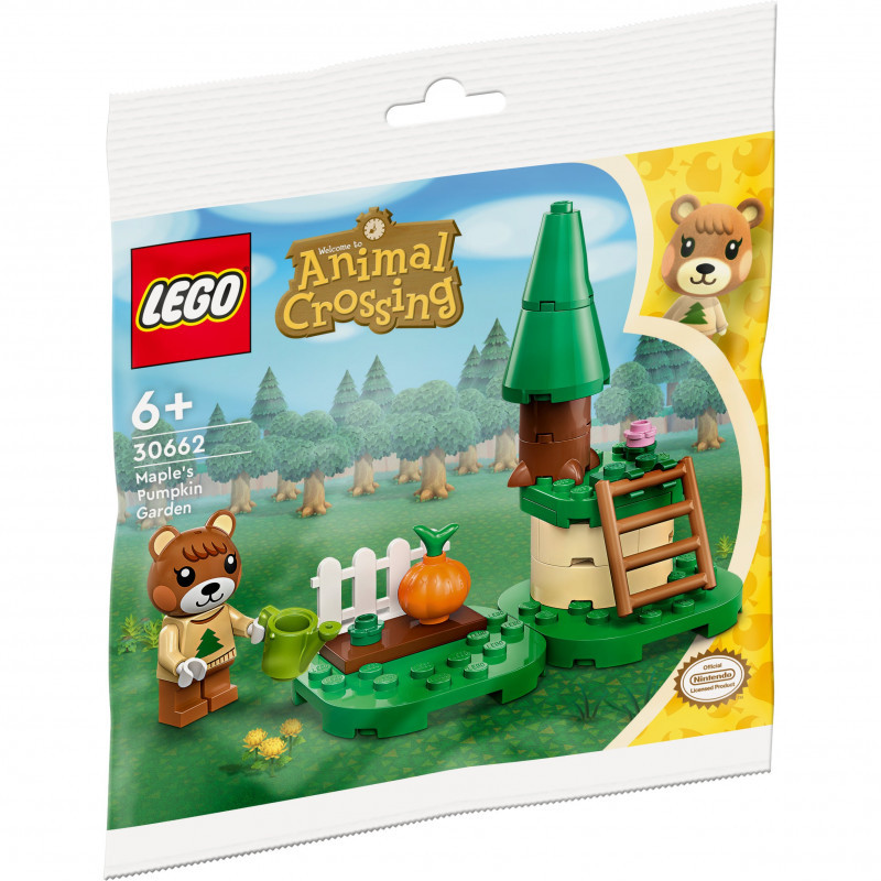 "LEGO Maple's Pumpkin Garden. Product type: Building set, Recommended age (min): 6 yr(s), Material: Plastic, Number of pieces: 29 pc(s). Package weight: 47 g"\n"Kids aged 6+ create their own scenes based on the Animal Crossing™ video game series as they help Maple water her garden and climb the ladder to view the plateau."