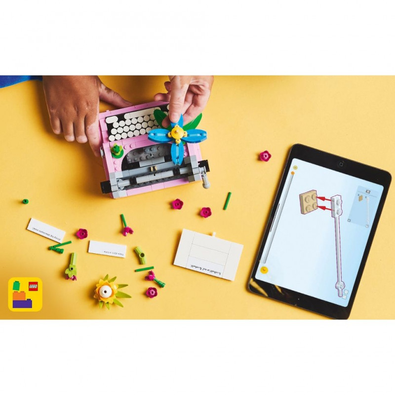 "LEGO Typewriter with Flowers. Product type: Building set, Recommended age (min): 8 yr(s), Material: Plastic, Number of pieces: 363 pc(s). Package weight: 523 g"\n"Treat young fans of flowers and art and design with this LEGO® Creator 3in1 Typewriter with Flowers (31169) toy playset. This mini typewriter toy for girls and boys aged 8 and over is decorated with 4 colourful brick-built flowers and features a moving keyboard and platen and a brick-built sheet of paper.