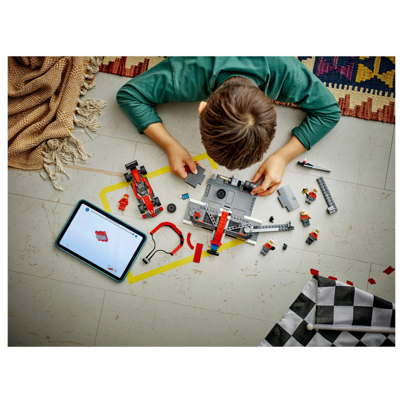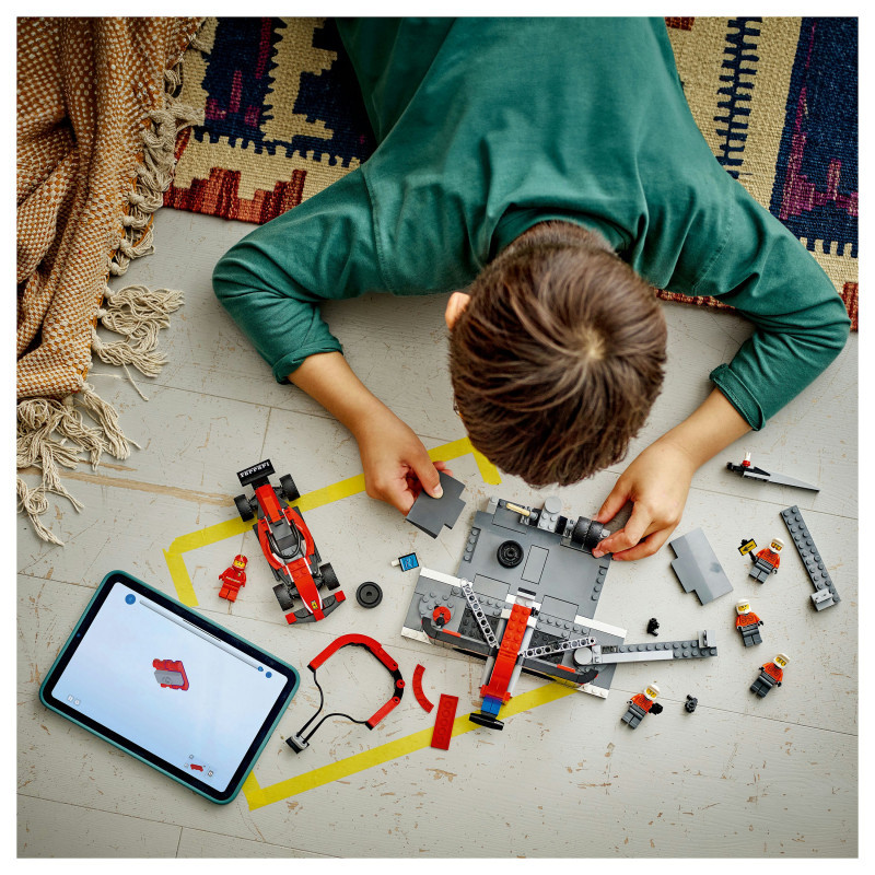 Digital building fun – This miniature F1® pit stop toy features instructions in the LEGO® Builder app, where kids can save sets, track progress and zoom in and rotate models in 3D while they build
