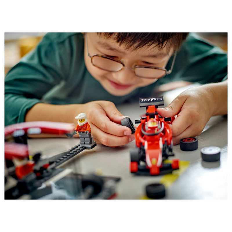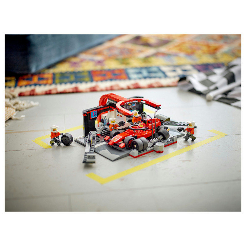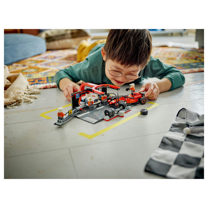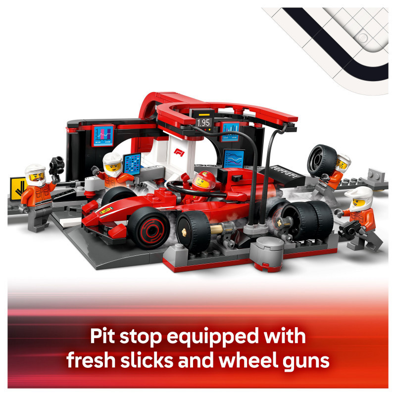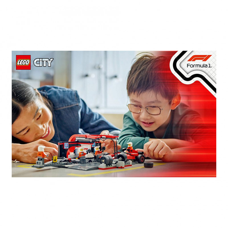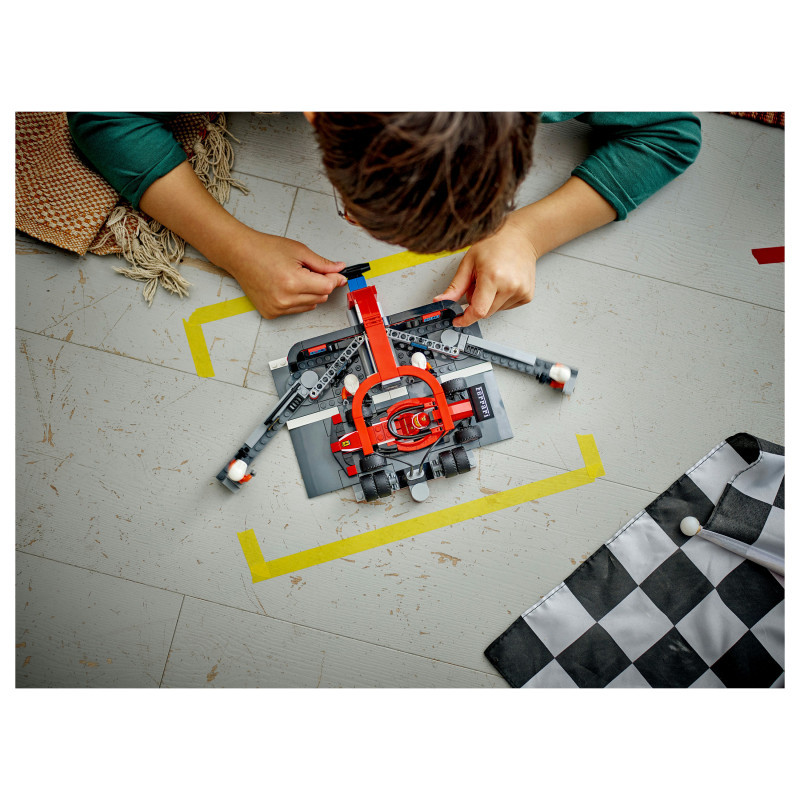 What’s in the box? – Everything kids need to build an F1® pit and Ferrari toy car, plus driver and 4 pit crew minifigures