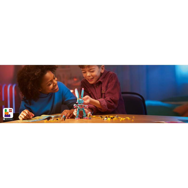 "LEGO Izzie and Bunchu the Bunny. Product type: Building set, Recommended age (min): 7 yr(s), Material: Plastic, Number of pieces: 259 pc(s). Package weight: 277 g"\n"Let kids aged 7+ jump into the action of the dream world with this LEGO® DREAMZzz™ Izzie and Bunchu the Bunny (71453) building toy set. Based on an exciting storyline from the TV show, the set lets kids help main character Izzie create a large version of her favourite cuddly toy to help rescue the stuffed animal, which has been kidnapped by a nightmare Grimspawn.