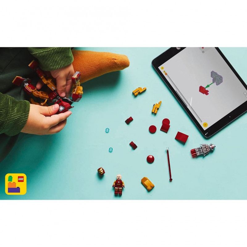 This LEGO Marvel mech playset includes 2 minifigures: Iron Man with a flip-open helmet and reversible head showing alternative expressions, and Ultron holding a laser beam element. The buildable mech has movable arms, legs and fingers and a stud-shooter at the end of its right arm. The torso opens to reveal a cockpit where the Iron Man minifigure can sit. For added digital fun, builders can zoom in, rotate models in 3D and track their progress using the fun, intuitive LEGO Builder app.