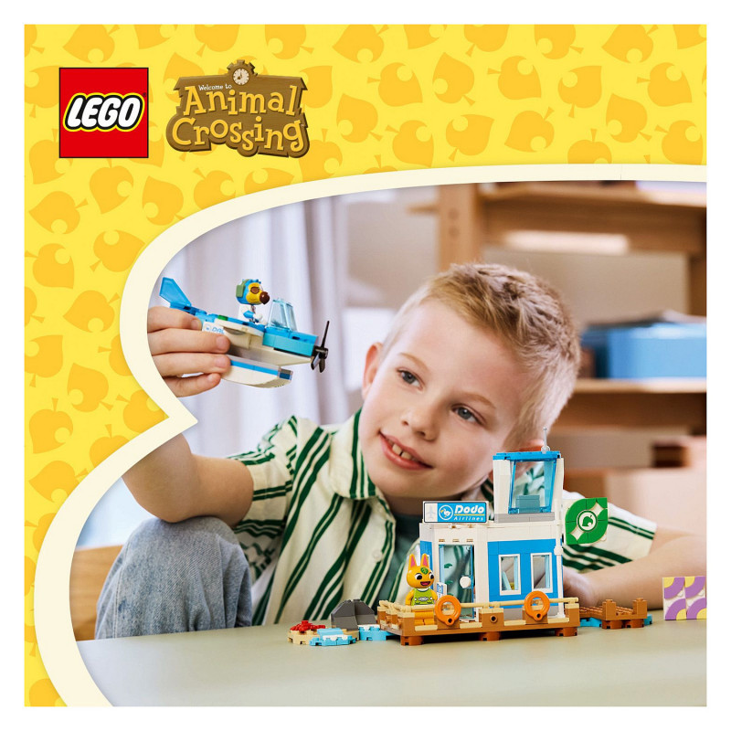 "LEGO Fly with Dodo Airlines. Product type: Building set, Recommended age (min): 7 yr(s), Material: Plastic, Number of pieces: 292 pc(s). Package weight: 519 g"\n"Let kids’ imaginations take flight with the LEGO® Animal Crossing™ Fly with Dodo Airlines Airport Playset (77051). Girls and boys aged 7 plus head off aboard the LEGO seaplane to explore a new island, just as they would in the Animal Crossing video game.