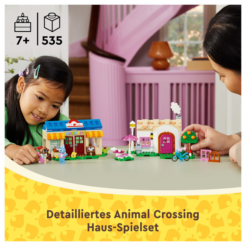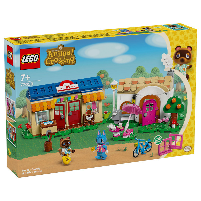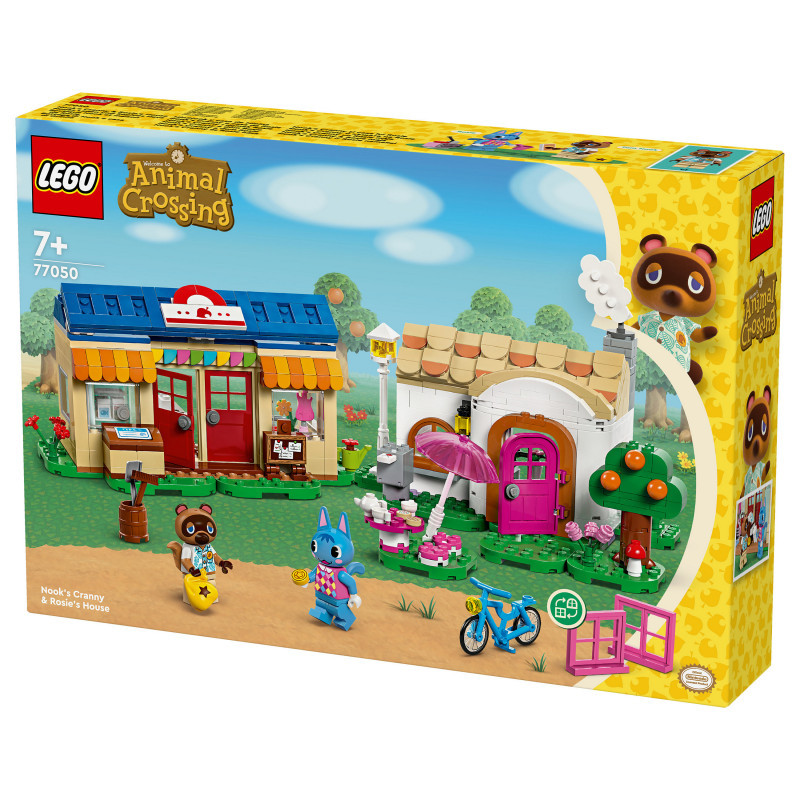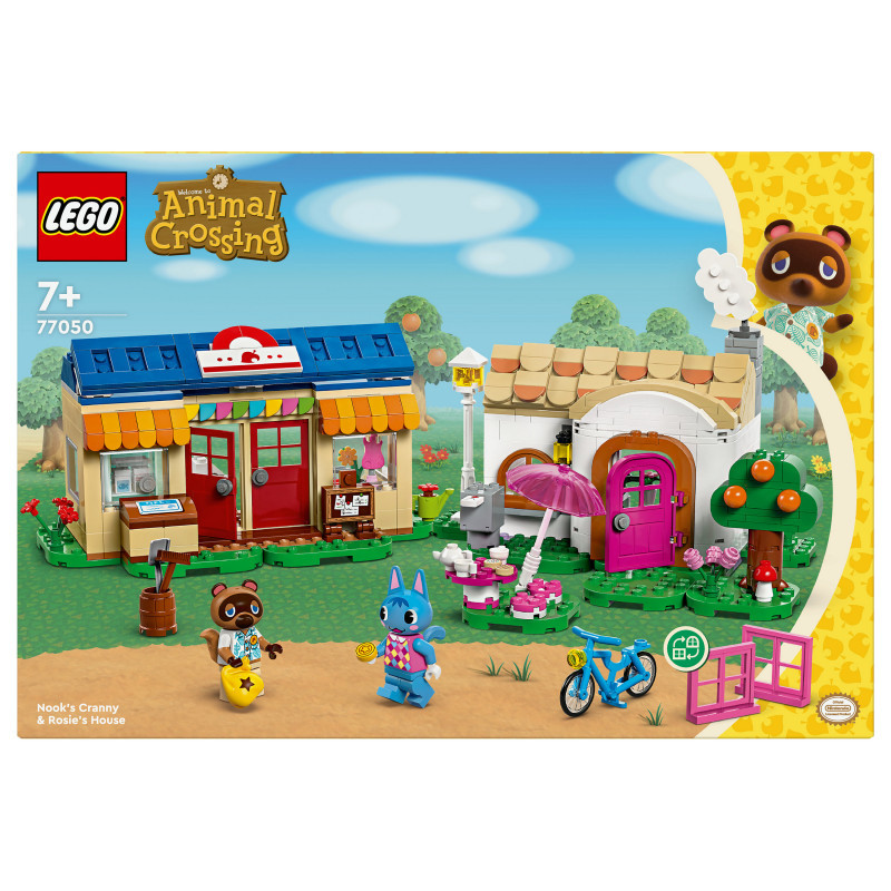 "LEGO Nook's Cranny & Rosie's House. Product type: Building set, Recommended age (min): 7 yr(s), Material: Plastic, Number of pieces: 535 pc(s). Package weight: 912 g"\n"Bring the world of Animal Crossing™ to kids’ rooms with the Nook’s Cranny & Rosie's House (77050) buildable toy. Girls and boys aged 7+ create scenes based on the Animal Crossing video game series, then take the role play in any direction they like as they invent creative new stories for the Tom Nook and Rosie toy minifigures.