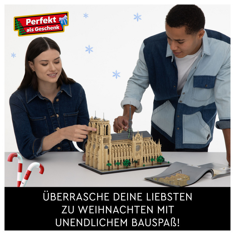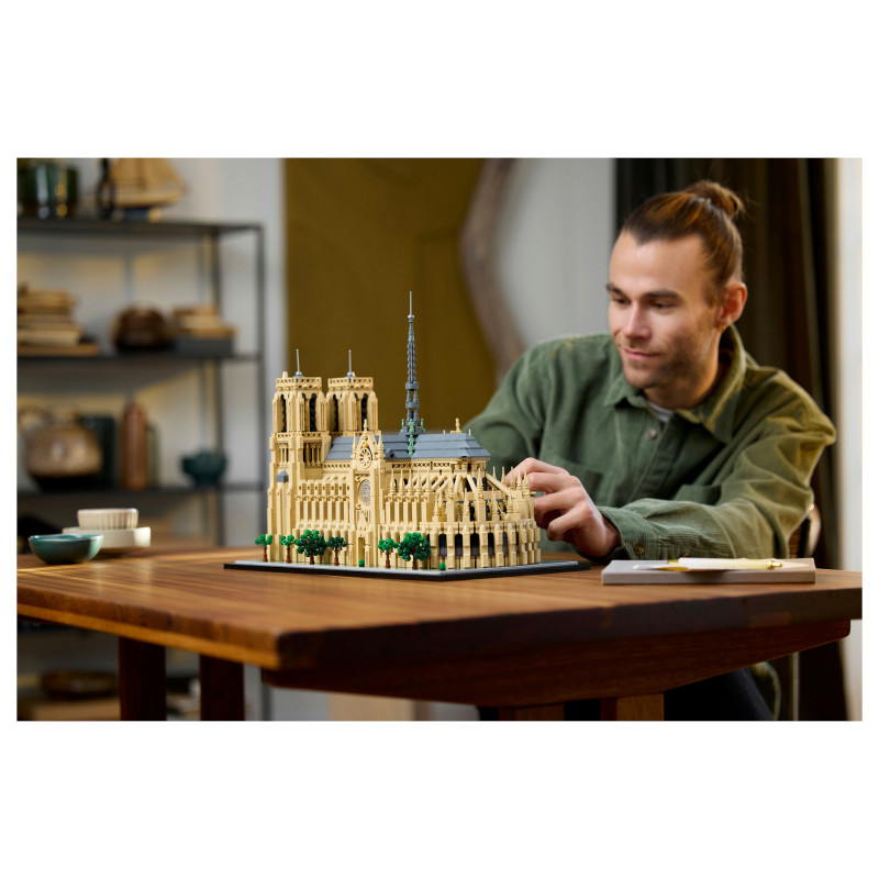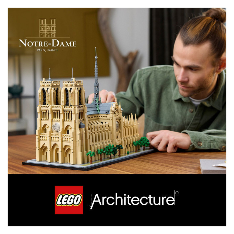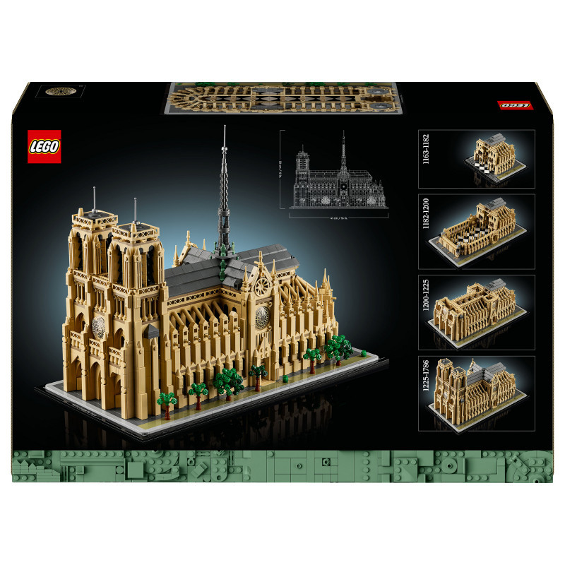 "LEGO Architecture Notre-Dame de Paris. Product type: Building set, Recommended age (min): 18 yr(s), Material: Plastic, Number of pieces: 4383 pc(s). Package weight: 3.57 kg"\n"Experience every stage in the development of an iconic Paris landmark with the collectible LEGO® Architecture Notre-Dame de Paris building set for adults (21061). This architectural model kit takes you on a historic building journey beginning in 1163, when the first stone was laid, to architect Viollet-le-Duc’s redesign work in the 19th century and then Notre-Dame’s majestic appearance before the fire of 2019.