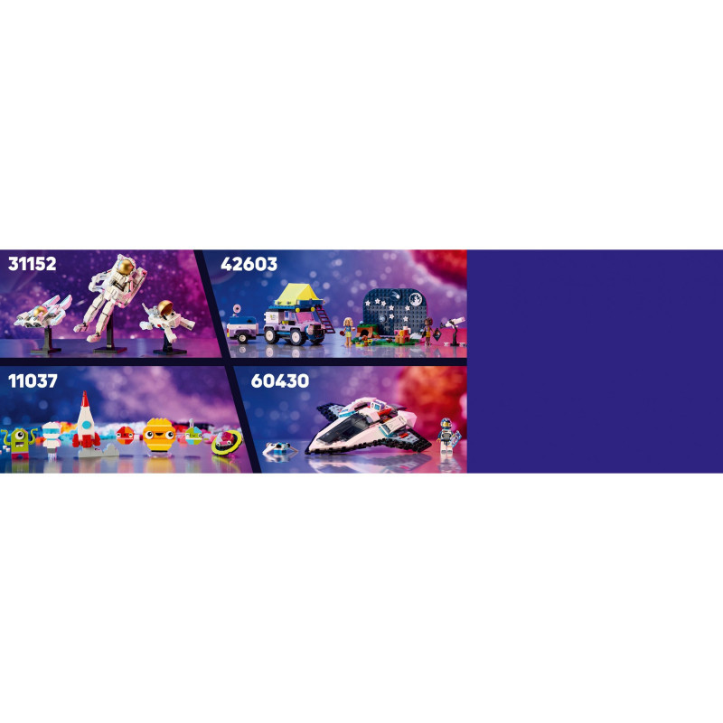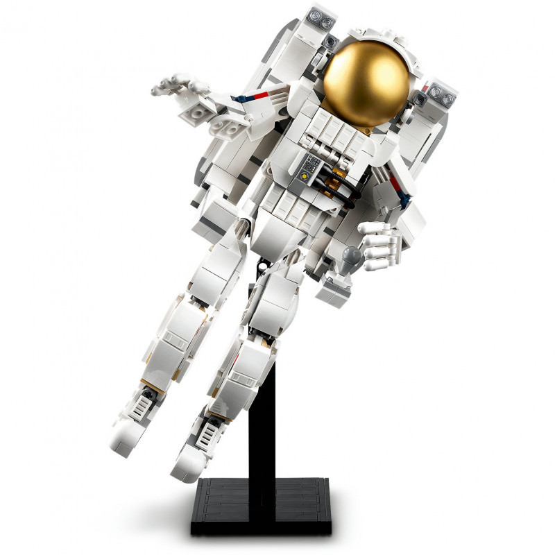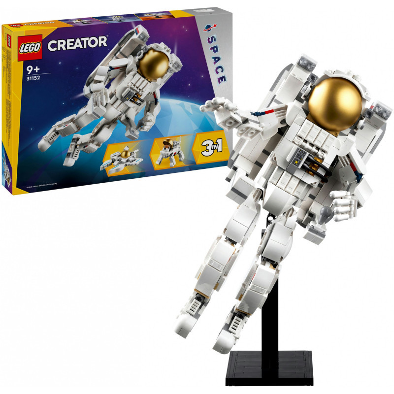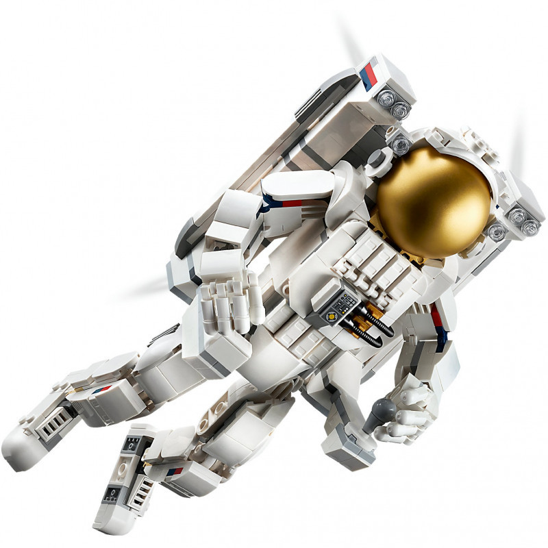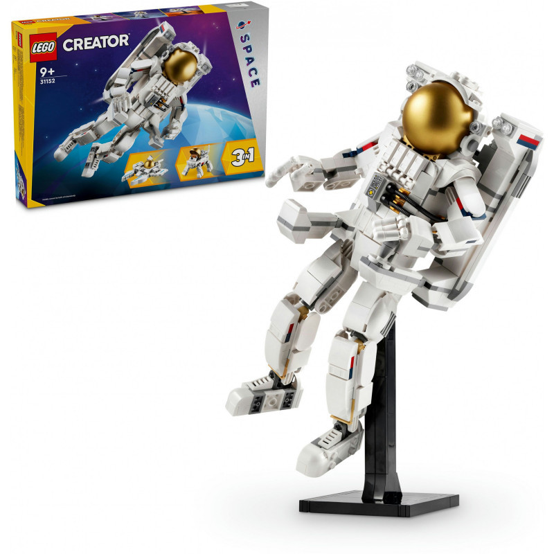 "LEGO Space Astronaut. Product type: Building set, Recommended age (min): 9 yr(s), Material: Plastic, Number of pieces: 647 pc(s). Package weight: 942 g"\n"LEGO® fans aged 9+ can blast into space to explore new planets by recreating space adventures with this LEGO Creator Space Astronaut (31152) building toy. The astronaut figure includes a detachable jet propulsion backpack, posable legs, feet, arms and fingers and a golden opening visor with a seat inside for a minifigure (not included).