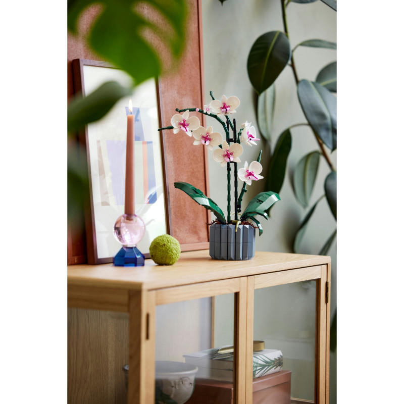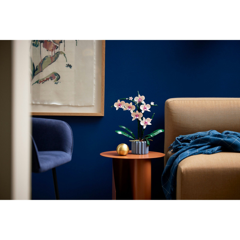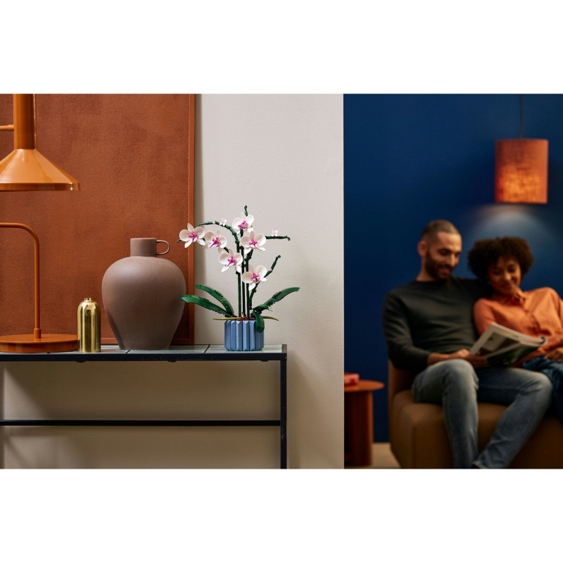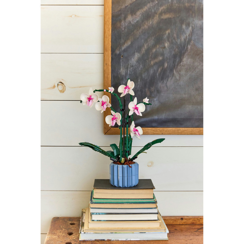 "LEGO Creator Expert Orchid. Product type: Building set, Recommended age (min): 18 yr(s), Material: Plastic, Number of pieces: 608 pc(s). Package weight: 758 g"\n"Enjoy a mindful building project and create a beautiful plant display for your home with this LEGO® Orchid (10311) model building project for adults. Take your time crafting all the details of the white and pink flowers and the vase. Inspired by a real orchid, the model has 5 leaves at the base and 2 wandering air roots to create an authentic display. Build the blue fluted vase and fill it with the brown LEGO elements to recreate the bark mix that a real orchid would grow in.