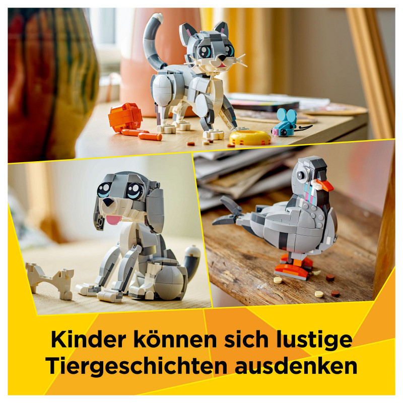 Endless animal play options – Kids can choose exciting adventures with 3 different pet sets (models cannot be built simultaneously): a Playful Cat toy, a cheerful dog toy and a curious pigeon toy