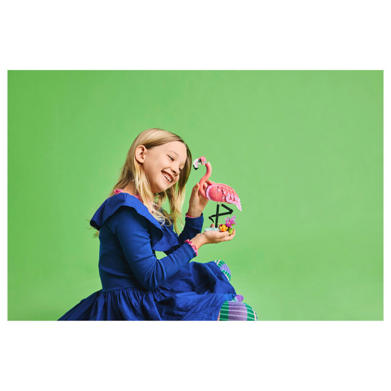 Endless play options – Kids can role-play stories with 3 different animal models (note that models cannot be built simultaneously): a pink flamingo toy, a pink cockatoo toy or a pink axolotl toy