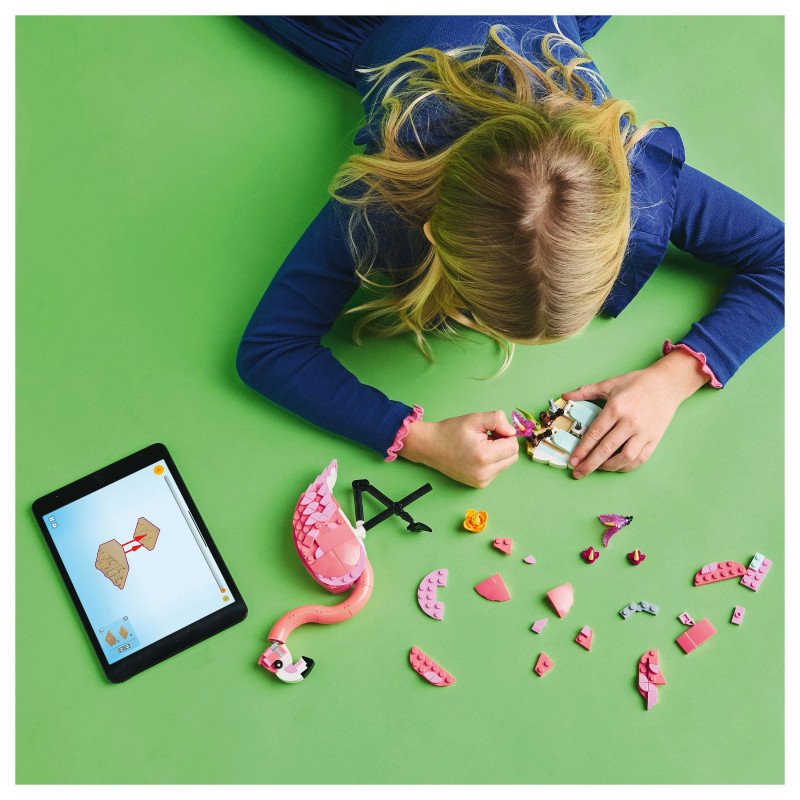 Measurements – This 288-piece LEGO® rebuildable toy set features a pink flamingo toy standing over 23 cm (9 in.) tall"