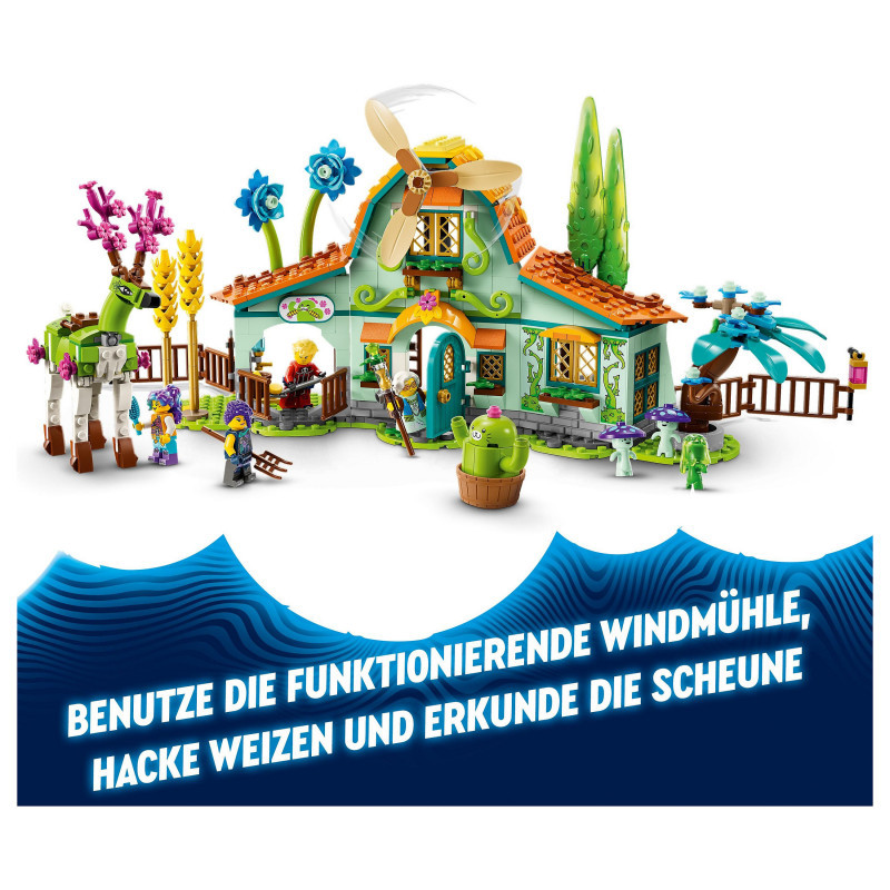 "LEGO DREAMZzz Stable of Dream Creatures. Product type: Building set, Recommended age (min): 8 yr(s), Material: Plastic, Number of pieces: 681 pc(s). Package weight: 945 g"\n"Kids aged 8+ can discover the whimsical Stable of Dream Creatures (71459) with this LEGO® DREAMZzz™ building toy set based on the TV show. Bursting with nature-inspired details and new friends, the set lets kids meet mythical creatures and nurture magical flowers. It’s full of awesome details that will help young imaginations bloom. Kids will delight in discovering the functional windmill, exploring the barn (which includes opening windows and gates) and getting acquainted with mythical new friends such as the 2 dreamlings.