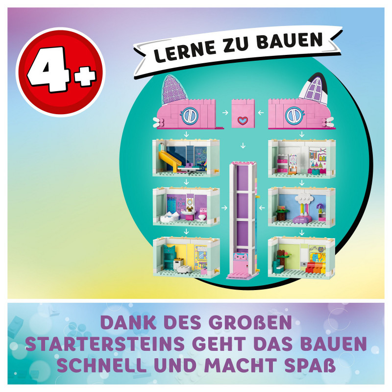 "LEGO Gabby's Dollhouse. Product type: Building set, Recommended age (min): 4 yr(s), Material: Plastic, Number of pieces: 498 pc(s). Package weight: 1.8 kg"\n"LEGO® Gabby’s Dollhouse (10788) is packed to the rooftop with activities and fun for kids aged 4+. Treat a fan of the DreamWorks Animation TV show to an 8-room house of their own.