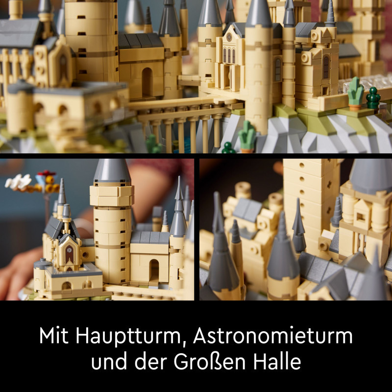 Scale model – Construct Hogwarts™ Castle and its surrounding area, including the Main Tower, Astronomy Tower, Great Hall, courtyards, bridges, greenhouses, Boathouse and the Black Lake
