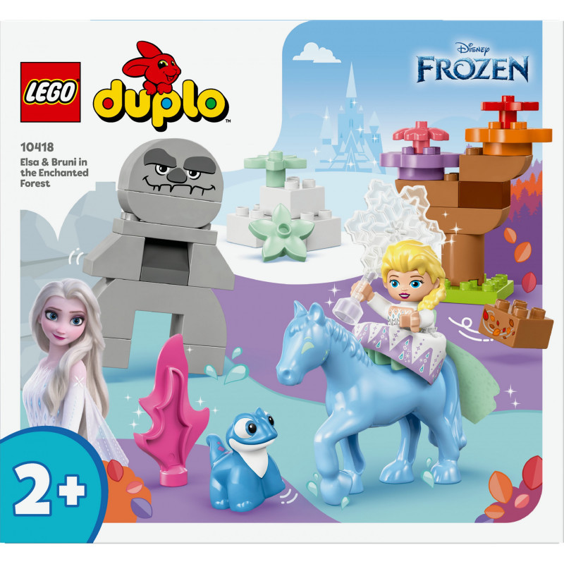 "LEGO DUPLO Elsa & Bruni in the Enchanted Forest. Product type: Building set, Recommended age (min): 2 yr(s), Material: Plastic, Number of pieces: 31 pc(s). Package weight: 455 g"\n"Immerse toddlers in a world of adventure with this LEGO® DUPLO® | Disney Elsa & Bruni in the Enchanted Forest (10418) building toy for ages 2+. This construction toy for preschool kids takes them to the Enchanted Forest with familiar characters from Disney’s Frozen 2: Elsa, Bruni the salamander and the Nokk, the magical water horse.