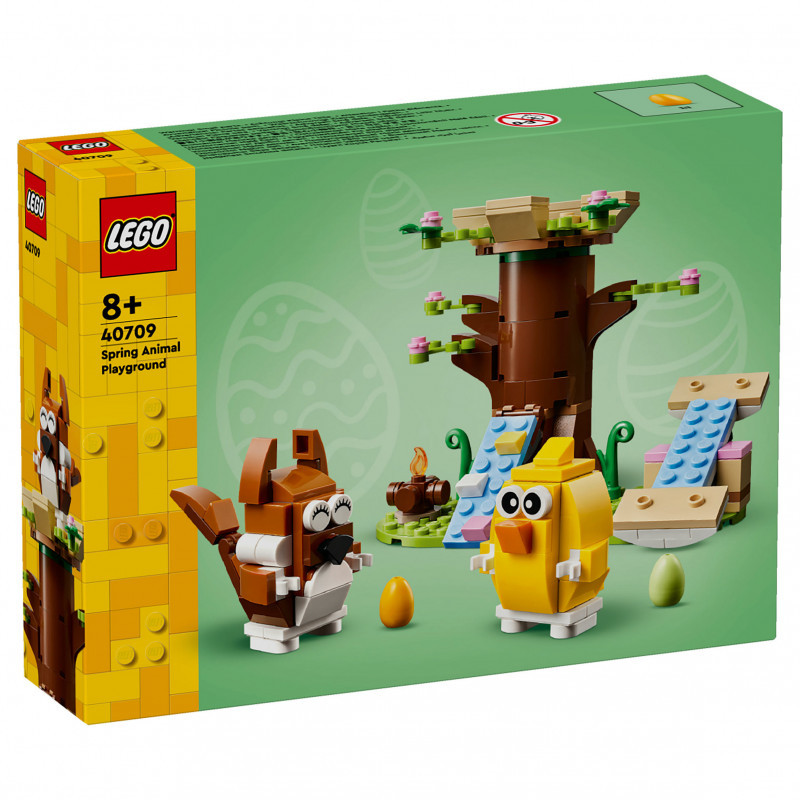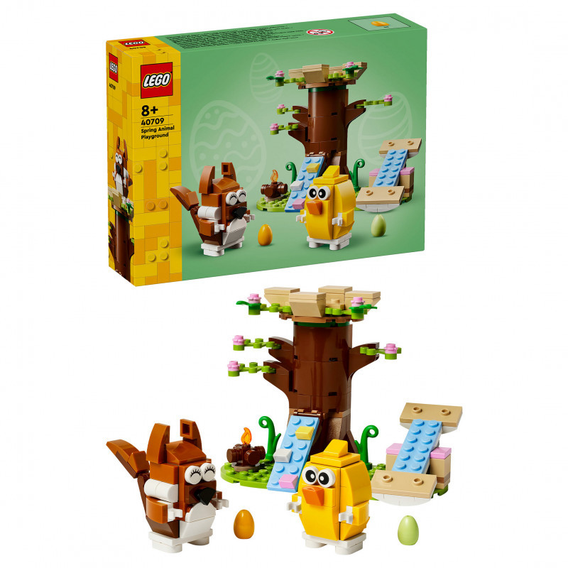"LEGO Iconic Spring Animal Playground. Product type: Building set, Recommended age (min): 8 yr(s), Material: Plastic, Number of pieces: 172 pc(s). Package weight: 198 g"\n"Celebrate Easter with this fantastic LEGO® animal toy packed with cool features. The Spring Animal Playground (40709) set lets boys and girls aged 8+ stage fun-filled stories with a squirrel toy, bird toy, tree house, campfire, seesaw and 2 Easter eggs.