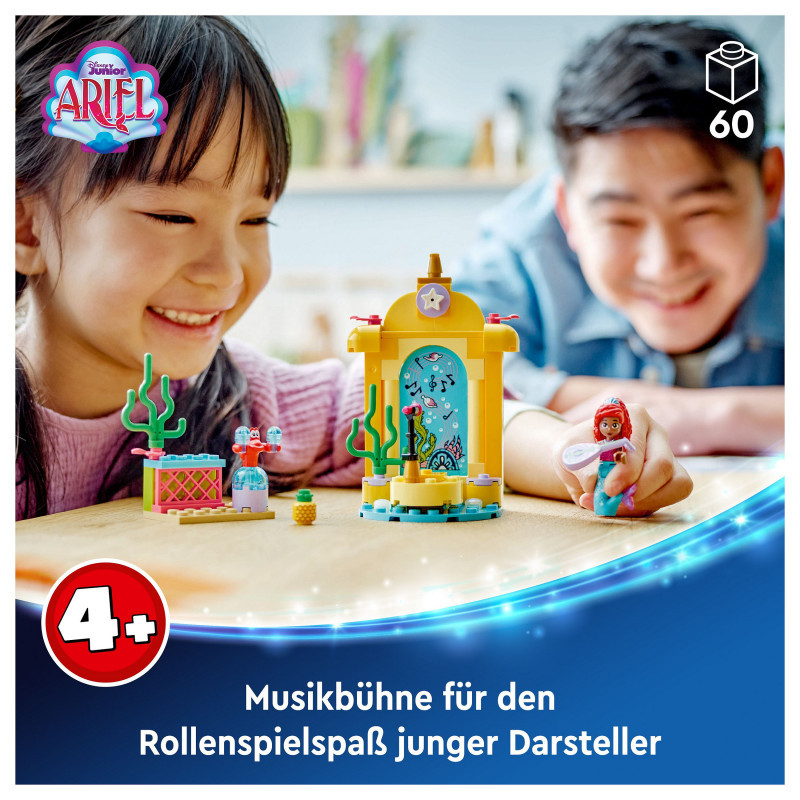 "LEGO Disney Princess Ariel's Music Stage. Product type: Building set, Recommended age (min): 4 yr(s), Material: Plastic, Number of pieces: 60 pc(s). Package weight: 149 g"\n"Performance and creative play await kids aged 4+ as they learn to build with this LEGO® ǀ Disney Princess Ariel’s Music Stage (43235) construction toy. This Disney Princess buildable playset gift is designed to improve problem-solving skills and inspire youngsters to enjoy endless creative play.