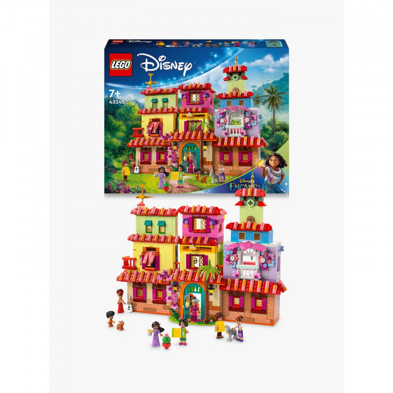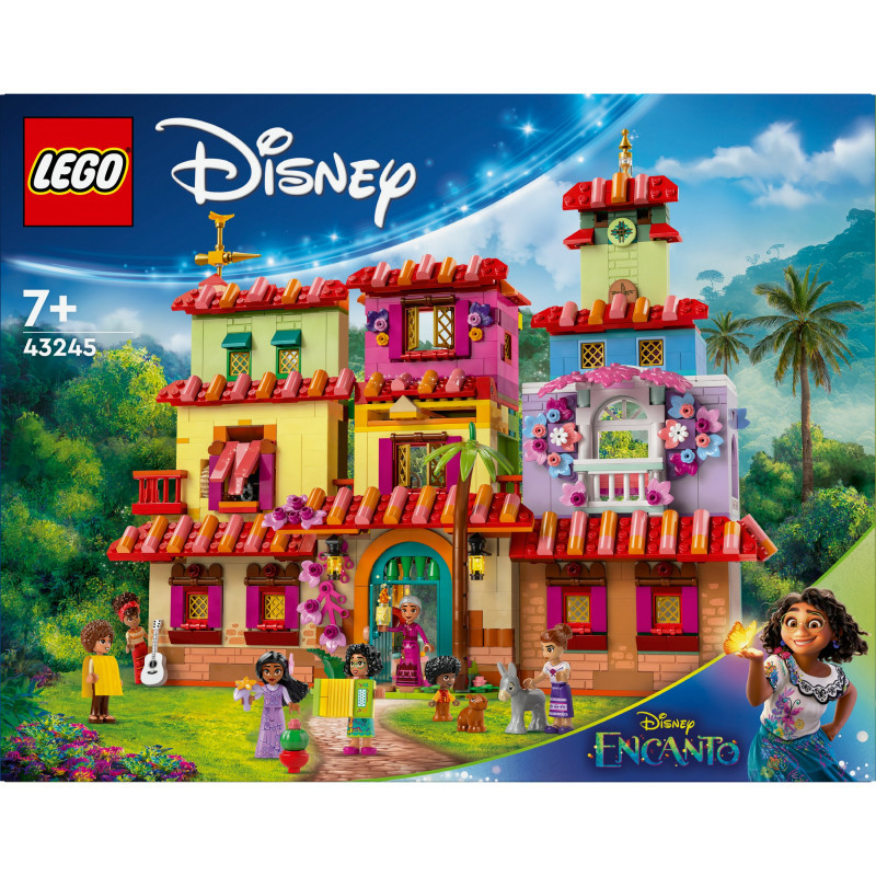 "LEGO The Magical Madrigal House. Product type: Building set, Recommended age (min): 7 yr(s), Material: Plastic, Number of pieces: 1560 pc(s). Package weight: 2.25 kg"\n"Limitless Encanto-inspired adventures await fans and kids aged 7+ in The Magical Madrigal House (43245) buildable toy. Filled with film details, this LEGO® ǀ Disney gift idea construction playset features the Madrigal family house with 9 sections for families to build together. Functions include moving shingles, waving shutters, a bed-swing and a small storage drawer.