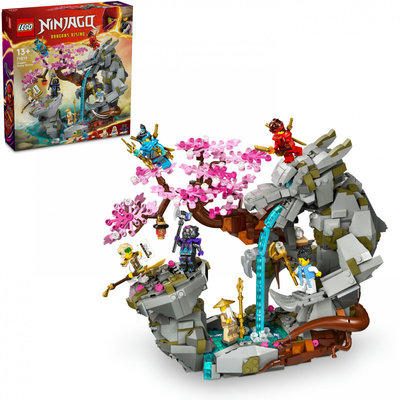"LEGO Dragon Stone Shrine. Product type: Building set, Recommended age (min): 13 yr(s), Material: Plastic, Number of pieces: 1212 pc(s). Package weight: 1.62 kg"\n"Boys and girls aged 13 and over can build, play with and display this spectacular LEGO® NINJAGO® Dragon Stone Shrine (71819). This adventure playset is crammed with interactive features and functions that make it perfect for hours of playtime fun or as an impressive model that kids can display on a shelf or bedside table.