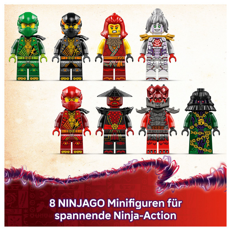 8 NINJAGO® minifigures – This LEGO® building set comes with ninja warriors Lloyd, Cole, Wyldfyre and Kai, and their ally Pixal, plus villains Drix, Zarkt and a Dragonian Warrior