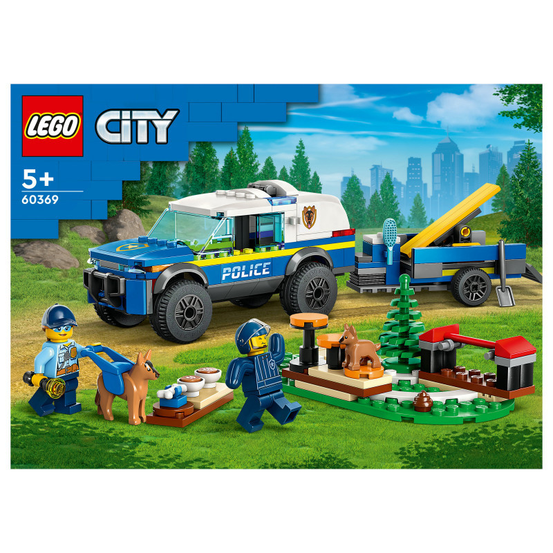 "LEGO City Mobile Police Dog Training. Product type: Building set, Recommended age (min): 5 yr(s), Material: Plastic, Number of pieces: 197 pc(s). Package weight: 434 g"\n"Kids and canine fans aged 5+ will love this LEGO® City Mobile Police Dog Training (60369) toy playset. Packed with inspiration for imaginative play, it comes with a K9 SUV, trailer and 3 dog-training apparatus, including a seesaw, jump bar and stepping paws. Just add the police officers and dog and puppy figures and let the fun begin.