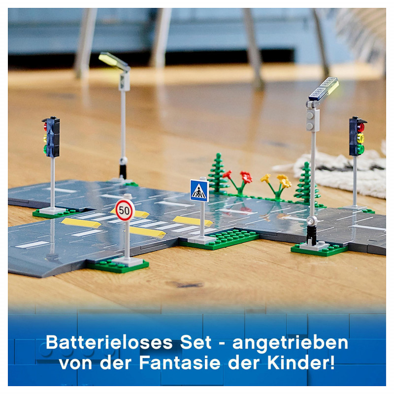 "LEGO City Road Plates. Product type: Building set, Recommended age (min): 5 yr(s), Material: Plastic, Number of pieces: 112 pc(s). Package weight: 426 g"\n"This LEGO® City Road Plates (60304) building set adds a realistic backdrop to kids’ imaginative play, with glow-in-the-dark toy streetlights, traffic lights, road signs, traffic lane markings, speed bumps, a pedestrian crossing, trees and greenery. Kids can place the Road Plates their way, build a city around them and connect to other LEGO Road Plate building sets to expand their city creations!