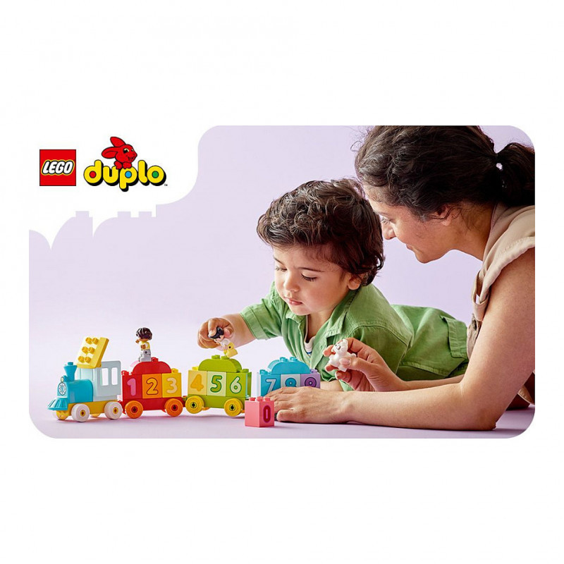 Toddlers can place the number bricks on and off the wagons, line them up in the correct order and build them together into a number wall. With moving wheels, an opening roof and friendly DUPLO characters to share the fun, the Number Train will transport your toddler to a world of imaginative, developmental play!