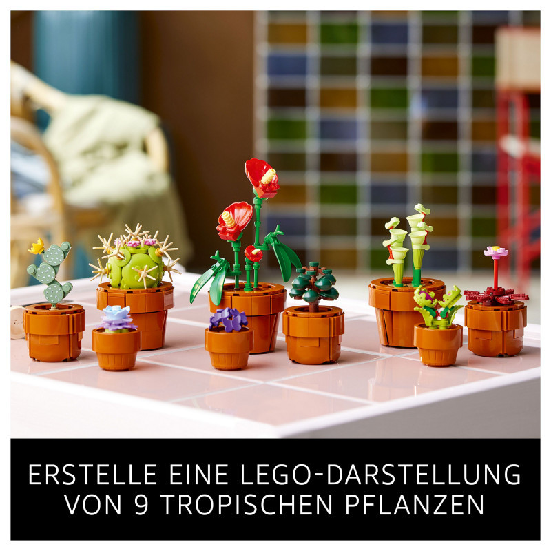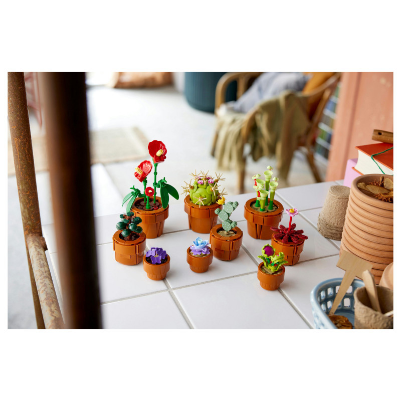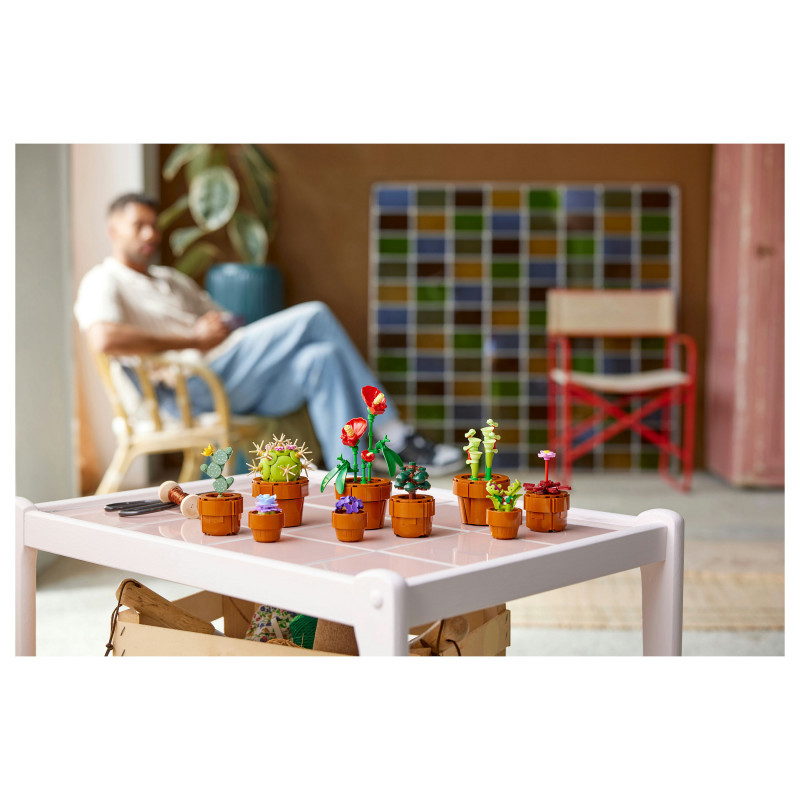 "LEGO Botanicals Tiny Plants. Product type: Building set, Recommended age (min): 18 yr(s), Material: Plastic, Number of pieces: 758 pc(s). Package weight: 707 g"\n"Create an elegant, zero-maintenance floral display with this home decor building set for adults. The LEGO® Botanicals Tiny Plants (10329) building project features flora based on arid, tropical and carnivorous species, each nestled in a buildable, terracotta-coloured container. Enjoy time out crafting each of the 9 plants before displaying them in your home or office.