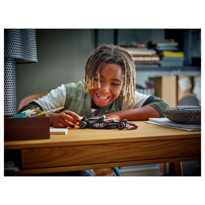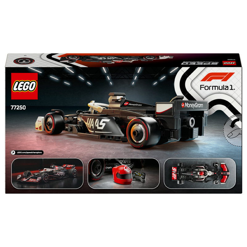 "LEGO Speed Champions MoneyGram Haas F1® Team VF-24 Race Car. Product type: Building set, Recommended age (min): 10 yr(s), Material: Plastic, Number of pieces: 242 pc(s). Package weight: 294 g"\n"LEGO® Speed Champions MoneyGram Haas F1® Team VF-24 Race Car (77250) lets boys and girls aged 10 plus enjoy all the excitement of Formula 1®. Kids and adult car collectors can build, display and play out races with an F1 race car model featuring design details from the real-life version that competed in the 2024 Formula 1 season.