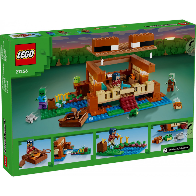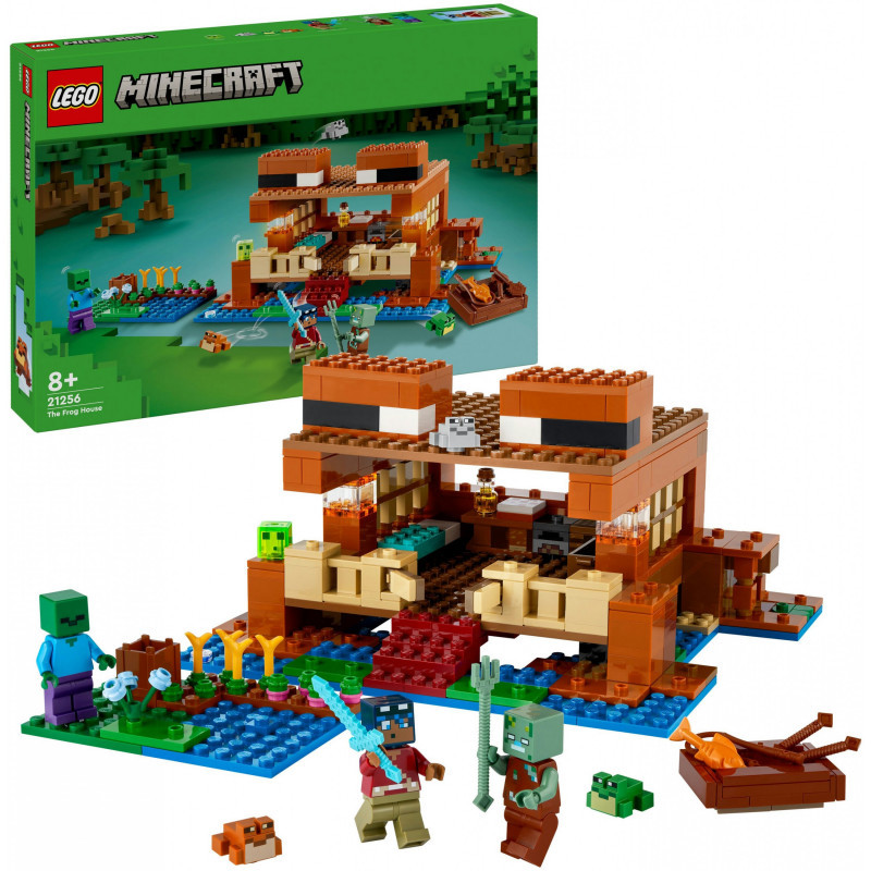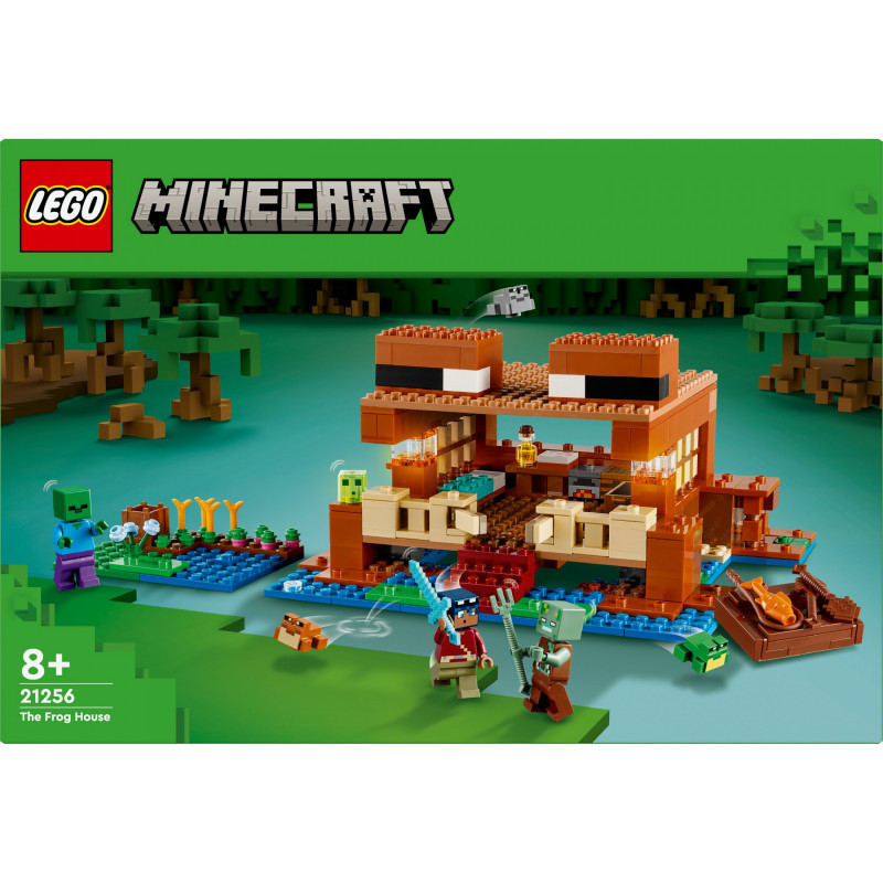 "LEGO The Frog House. Product type: Building set, Recommended age (min): 8 yr(s), Material: Plastic, Number of pieces: 400 pc(s). Package weight: 732 g"\n"This LEGO® Minecraft® toy house is shaped like a Frog and comes with figures of popular characters from the game. LEGO Minecraft The Frog House (21256) is a hands-on gaming gift for 8-year-olds and over.