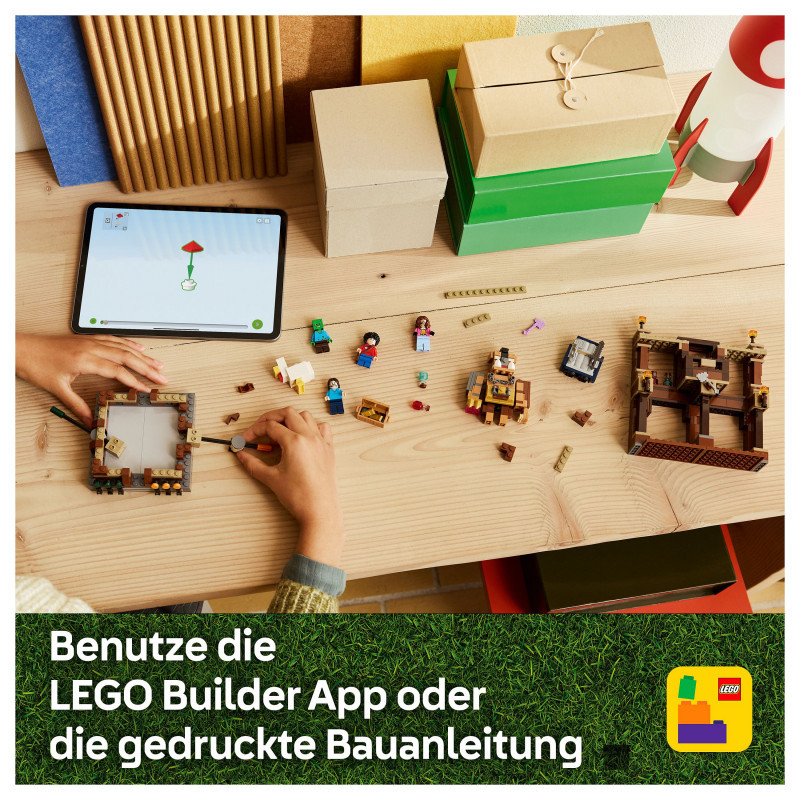 The LEGO® Minecraft building set features toy figures from the film – Steve, Garrett, Henry, a baby zombie, a chicken jockey and a posable great hog – plus weapons and potions that kids can use as they recreate battle scenes and explore adventures of their own. The set features a functional fighting ring with score-keepers and handles kids can attach to the fighters. There’s also a mansion facade with a removable chest and weapons rack. For digital fun, the LEGO Builder app lets kids zoom in, rotate models in 3D and track their progress.