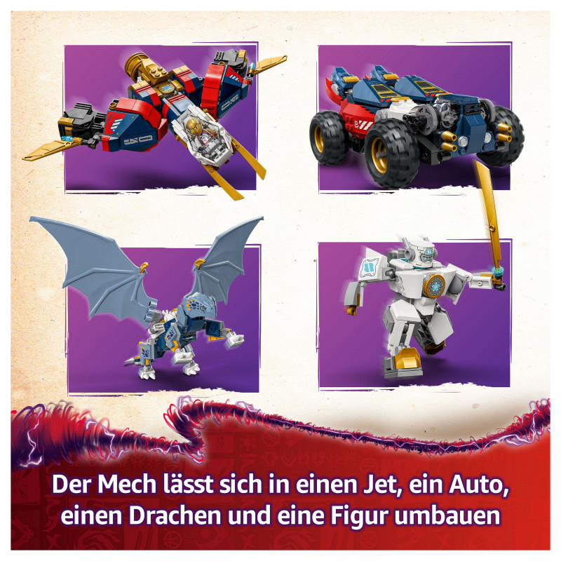 4-in-1 mech toy for kids – Boys and girls aged 9 years old and over can recreate action from season 3 of the NINJAGO® Dragons Rising TV show with Zane’s Ultra Combiner Mech