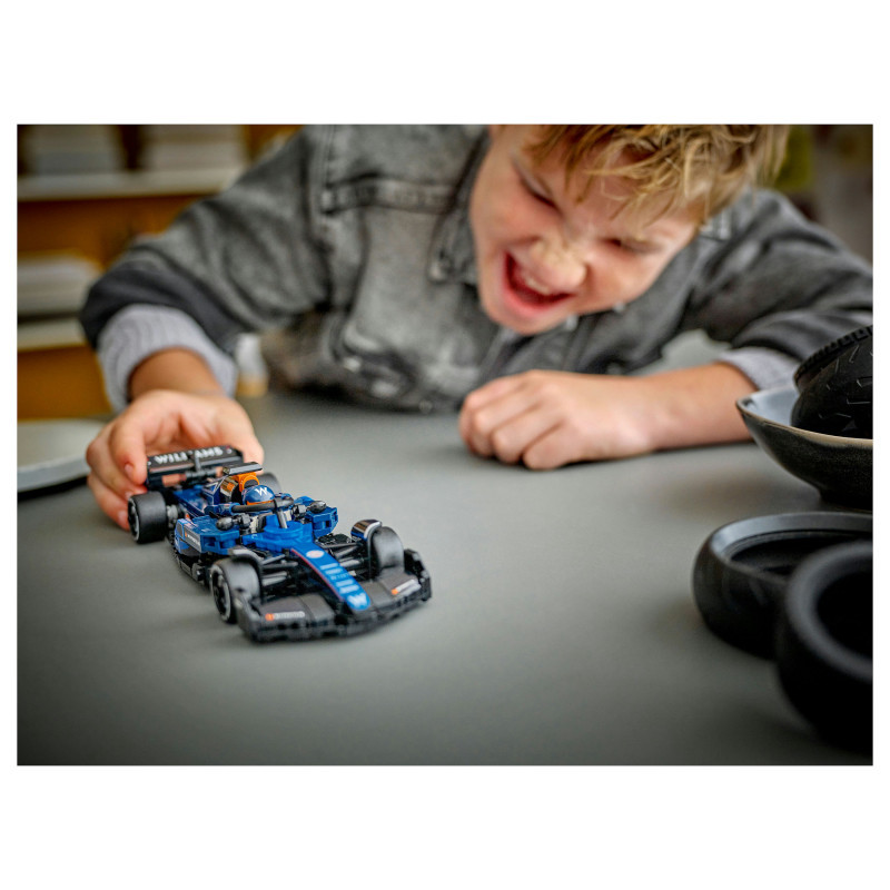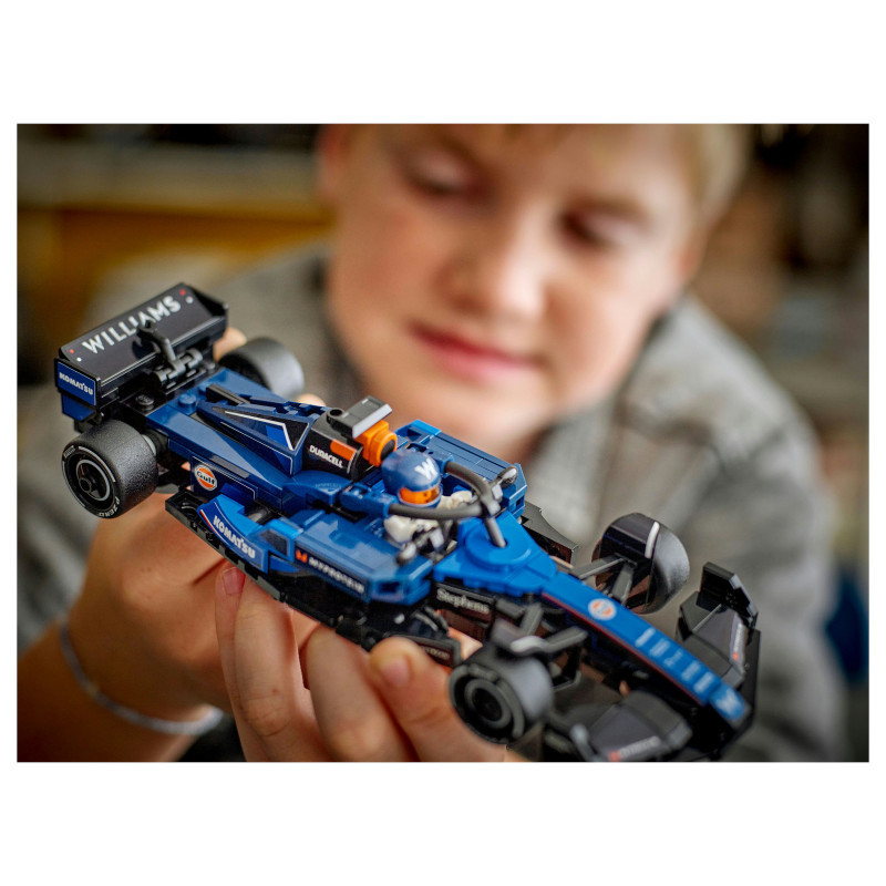 "LEGO Speed Champions Williams Racing FW46 F1® Race Car. Product type: Building set, Recommended age (min): 10 yr(s), Material: Plastic, Number of pieces: 263 pc(s). Package weight: 298 g"\n"The superfast thrills of Formula 1® racing await boys and girls aged 10 plus with the LEGO® Speed Champions Williams Racing FW46 F1® Race Car (77249) toy vehicle. Kids and adult car collectors can build, display and play out races with an F1 race car that features design details from the real-life version that competed in the 2024 Formula 1 season.