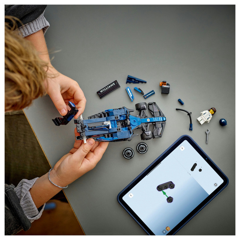 The F1 model car features a cockpit that opens by lifting the halo bar, a rear wing, wishbone suspension, sponsor stickers and wider rear tyres imprinted with “Pirelli”. The buildable F1 toy car also comes with a driver minifigure wearing a Williams Racing outfit and a winged helmet to place inside the cockpit.