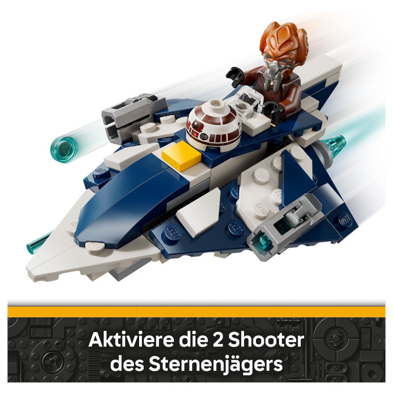The first-ever LEGO® Star Wars™ Microfighters building model of a Jedi starfighter – This miniature Jedi starfighter in Plo Koon’s own colours has a cockpit for a LEGO minifigure and 2 stud shooters