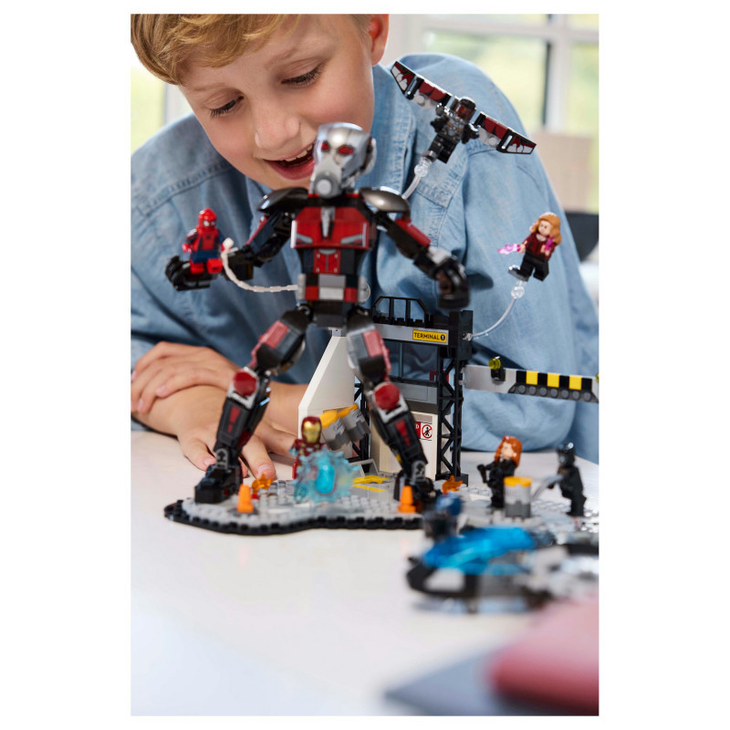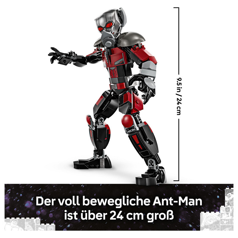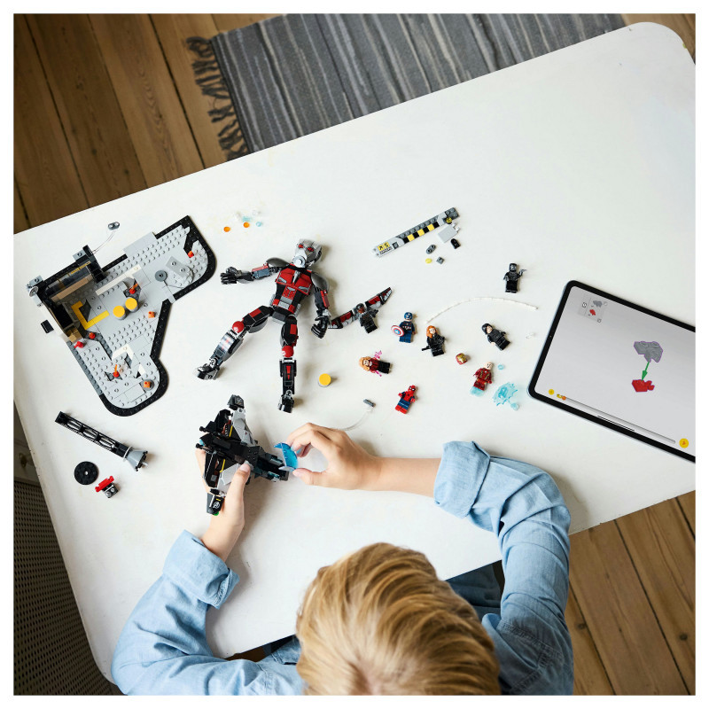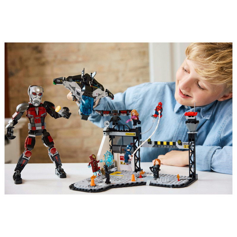 LEGO® Marvel figures – Includes a large, fully jointed Ant-Man LEGO figure and 8 minifigures: Captain America, Winter Soldier, Wanda, Falcon, Iron Man, Spider-Man, Black Widow and Black Panther