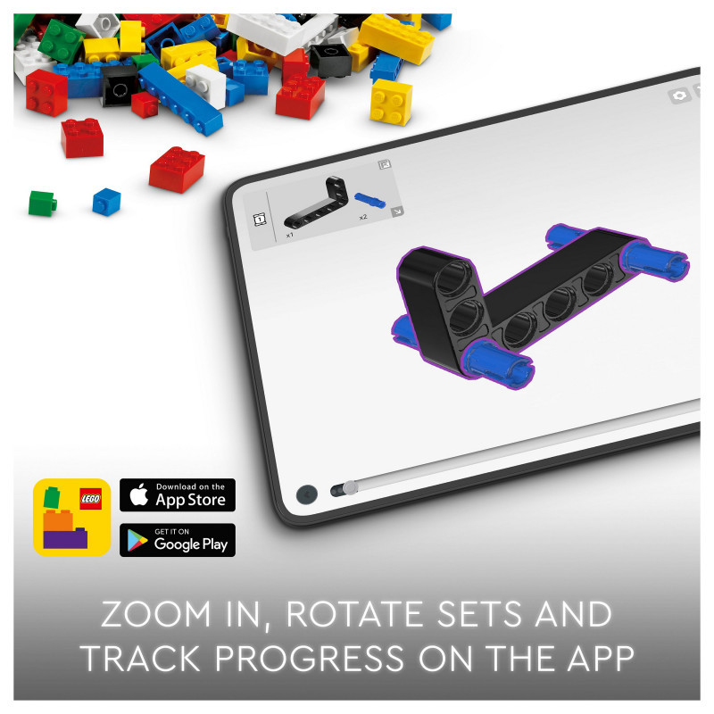 LEGO Technic construction sets feature realistic functions to introduce young LEGO builders to engineering. Give kids a rewarding building adventure with the LEGO Builder app. Here they can zoom in and rotate models in 3D and track their progress.
