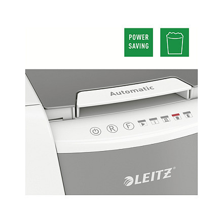 "Leitz IQ Autofeed Small Office 100 Automatic Paper Shredder P4. Shredding type: Cross shredding, Working width: 22 cm, Shredding size: 4 x 30 mm. Power consumption (typical): 300 W. Width: 365 mm, Depth: 430 mm, Height: 530 mm. Warranty period: 2 year(s)"\n"Fully automatic paper shredder from Leitz with unique clean emptying feature. So intelligent it quietly works on its own, just insert your stack of papers (incl. staples & paper clips), close the lid and get on with your day. Ideal for small office use. Confidential security and excellent performance with this anti jam, quiet and long running (20 min) autofeed shredder. Automatically shred 100 sheets of A4 into security P4 (4x30mm) cross cut pieces in one go into the generous 34L bin. Simple operation using touch controls."