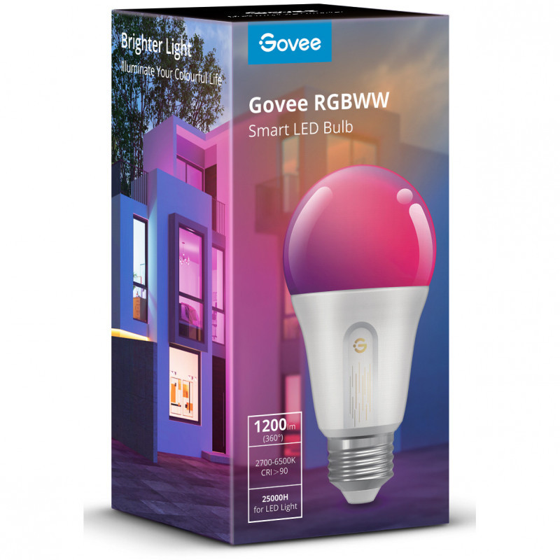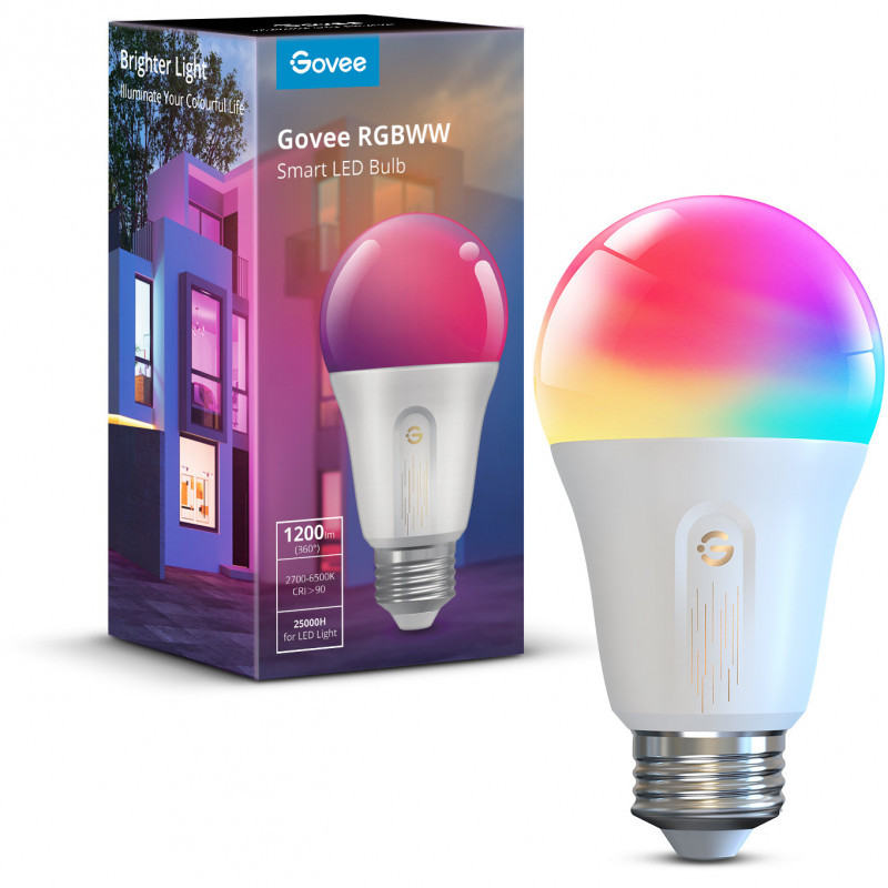"Govee Smart Wifi&BLE Light Bulb 1200lm. Type: Smart bulb, Interface: Wi-Fi/Bluetooth, Product colour: White. Energy efficiency class: F, Energy consumption per 1000 hours: 12 kWh, Energy efficiency scale: A to G. Width: 60 mm, Depth: 60 mm, Height: 150 mm. Package type: Box. Quantity per pack: 1 pc(s)"\n"Make your home feel a lot brighter with these smart color-changing bulbs. Adjust between RGB colors as well as warm and cool whites for ideal lighting every time."