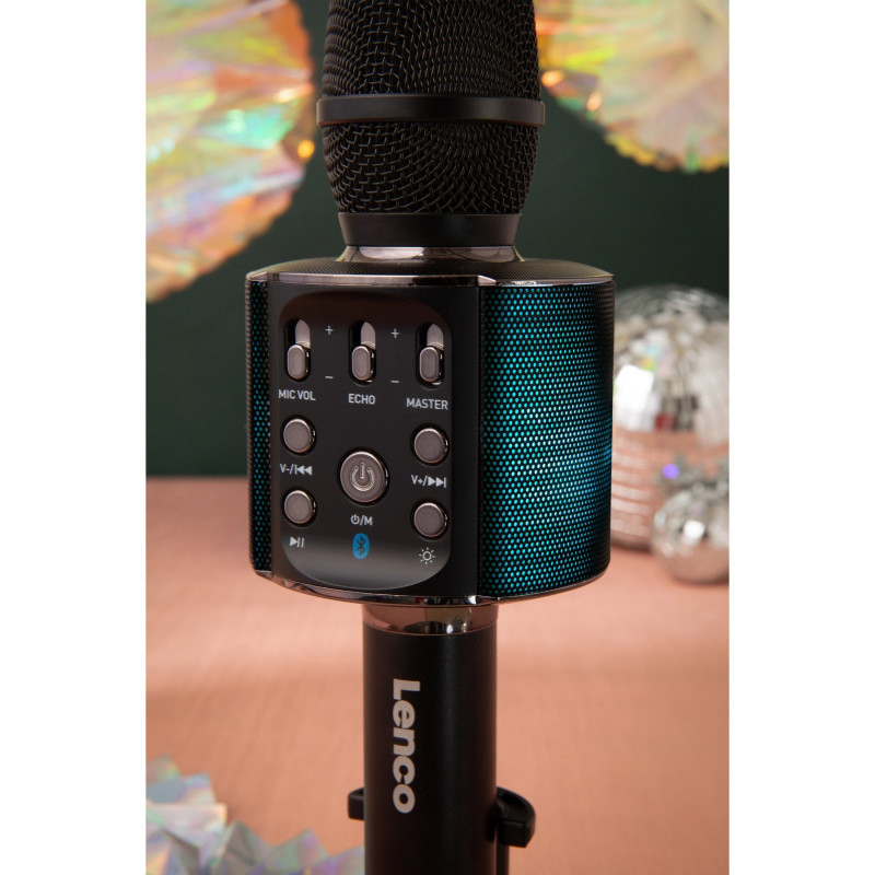 This microphone works via a Bluetooth® connection and is extremely compact, so this microphone can also be taken to all kinds of parties. Also, the Lenco BMC-090 has integrated LED lighting, so you can enhance your performance with lighting effects. The battery of this product lasts up to 8 hours, which means hours of sing-a-long fun with this karaoke microphone!