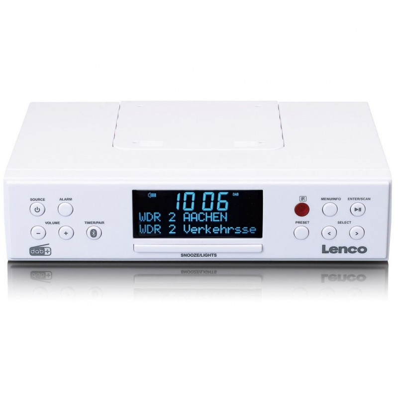 "Lenco KCR-190. Radio type: Kitchen, Tuner type: Analog & digital, Supported radio bands: DAB+, FM, PLL. Speaker type: 2-way. Display type: LCD, Display diagonal: 8.38 cm (3.3""), Backlight colour: White. Bluetooth range: 10 m. Headphone connectivity: 3.5 mm"\n"Introducing the Lenco KCR-190WH: a convenient and compact DAB+/FM Kitchen Radio with Bluetooth®, LED lighting, two built-in stereo speakers, and a clock and timer function. With its sleek and modern design, this kitchen radio effortlessly blends into any kitchen decor, while its compact size ensures it takes up minimal space. The KCR-190WH is packed with features that make adding music to your cooking routine enjoyable.