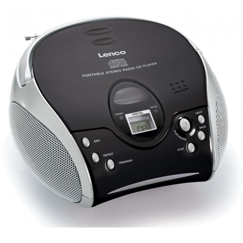 "Lenco SCD-24. Tuner type: Digital, Supported radio bands: FM, FM band range: 87.5 - 108 MHz. Optical drive type: Player, Disc types supported: CD, Playback modes: Random, Repeat, Repeat all. Display type: LCD. Product colour: Black, Silver, Control type: Buttons, Volume control: Touch. Headphone connectivity: 3.5 mm"\n"The Lenco SCD-24 is a portable radio/CD player for young and old. The uncluttered design makes the Lenco SCD-24 easy to operate. All you have to do is plug the Lenco SCD-24 into the wall socket or insert batteries. At the press of a button, you can immediately start to enjoy your favourite CDs or radio station.